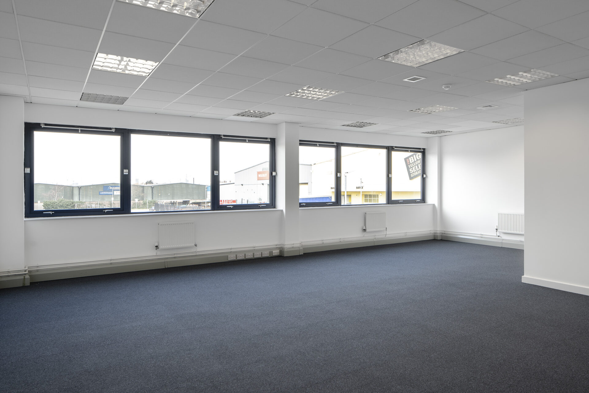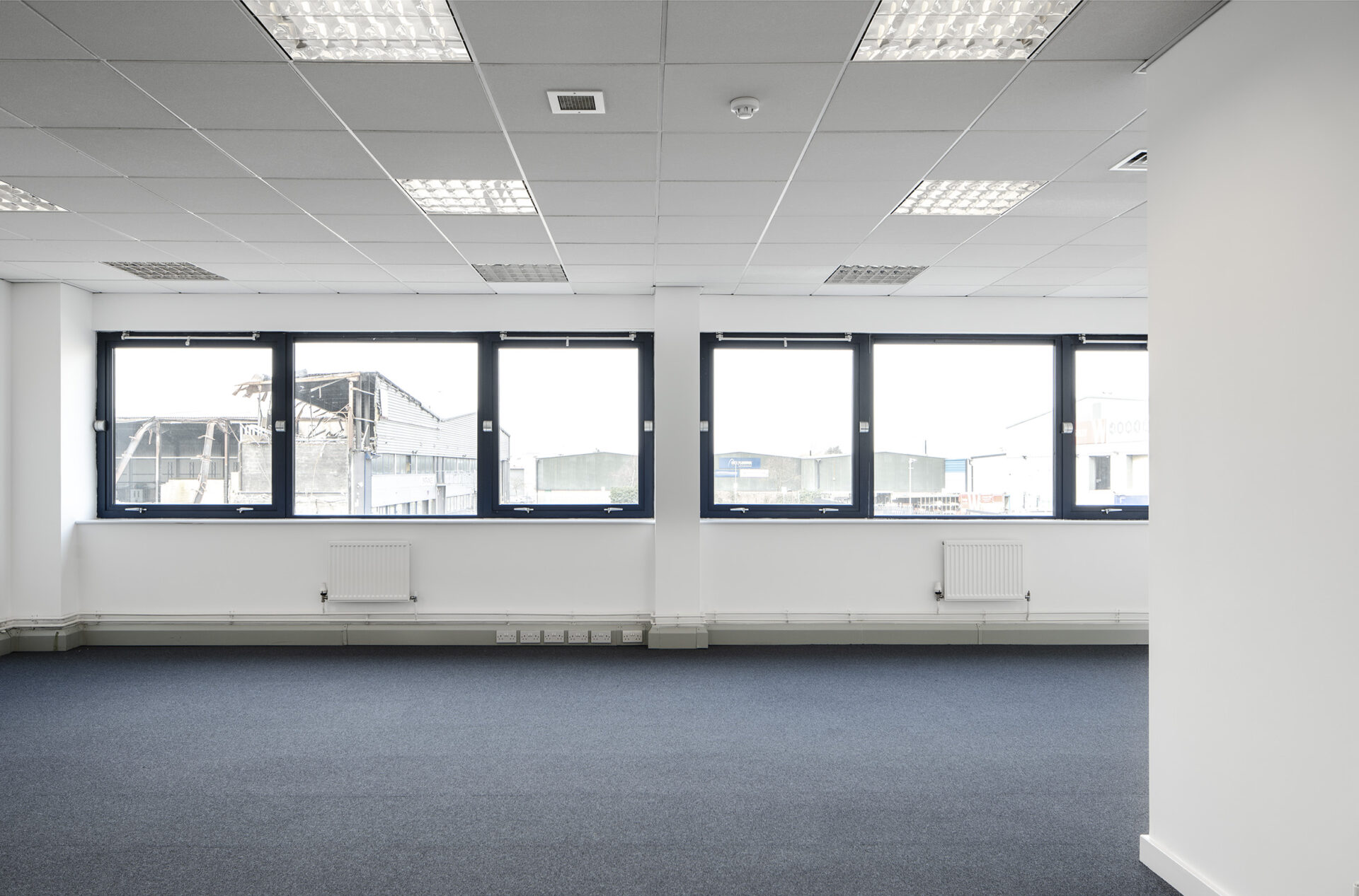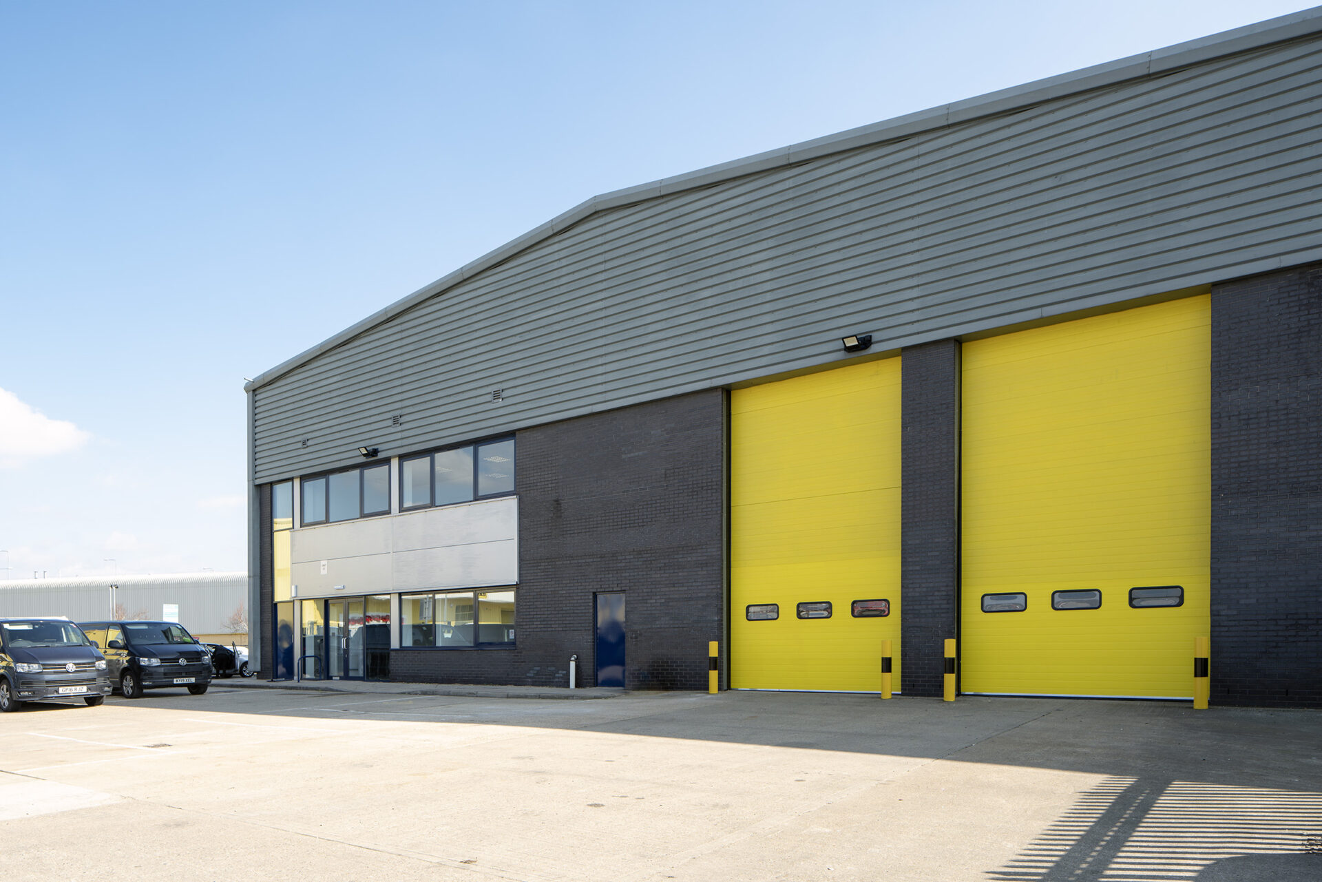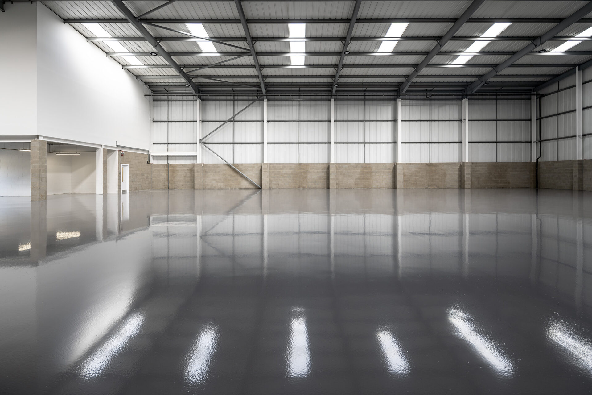 Works included the strip-out of ground floor offices, full internal redecoration, and installation of new carpets. Roof lights and damaged cladding were replaced, with weathered panels cleaned and treated. New suspended ceilings were fitted in office areas, shutter doors were repaired, and a durable resin floor was installed across the warehouse.