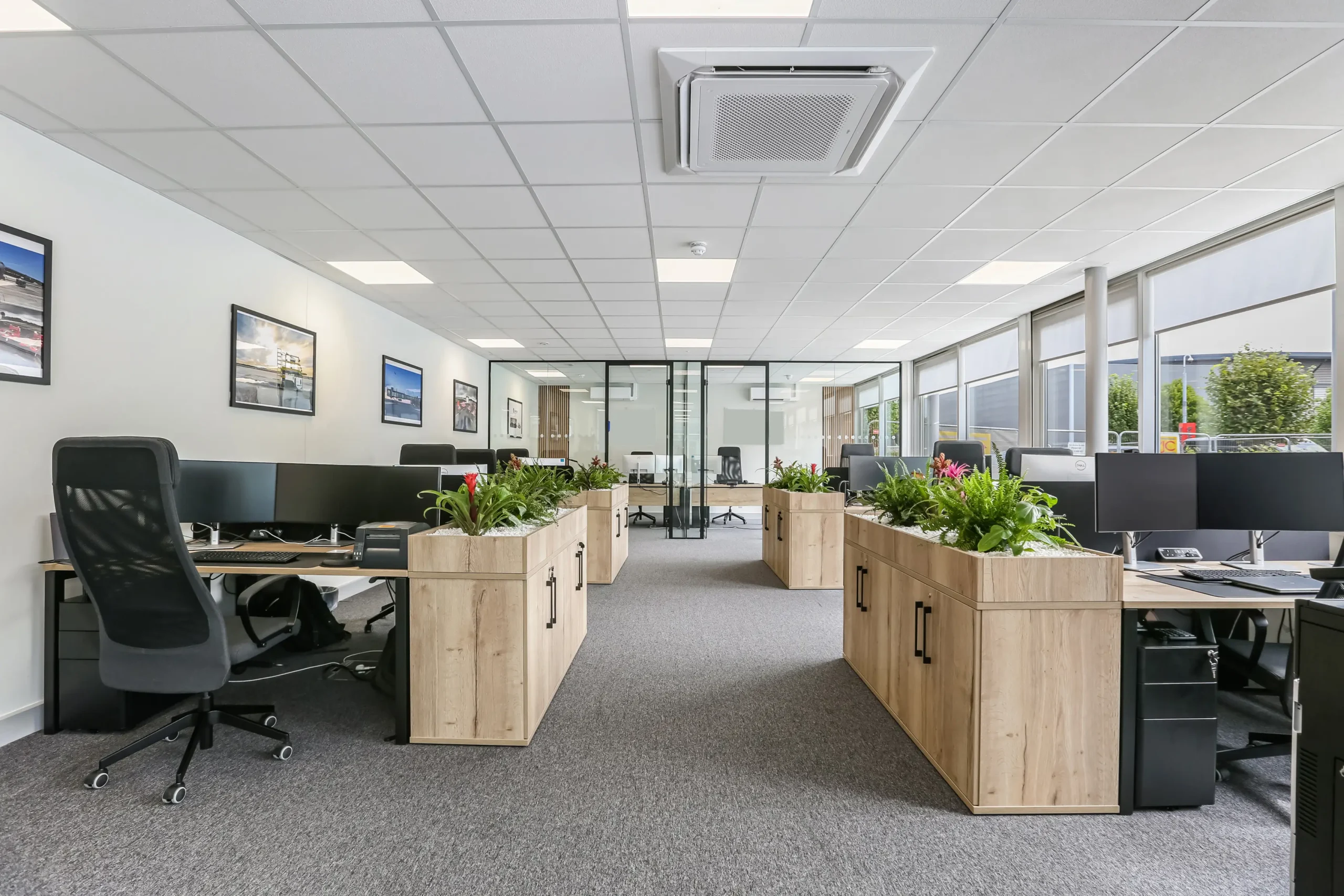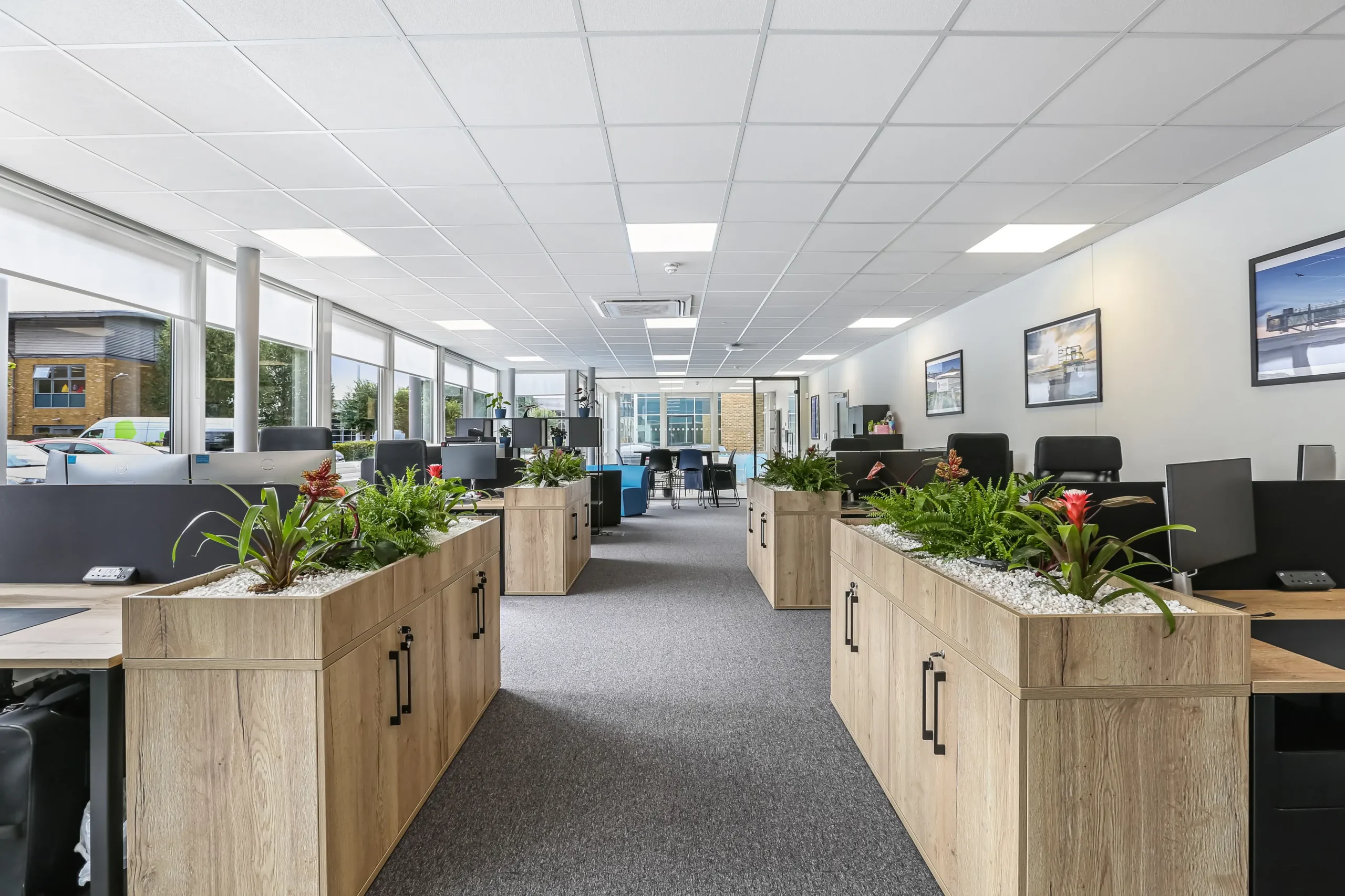 The scope of the project included an open-plan office with a modern, welcoming feel, boardroom and meeting rooms, as well as a shared kitchen and breakout area for both office and warehouse staff. The first floor incorporated directors’ offices, a boardroom and a bright open workspace with living planters to enhance the environment.