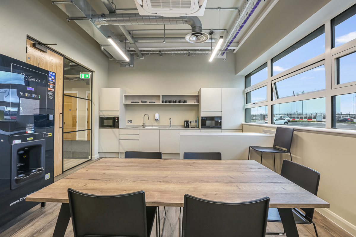 The scope included operational offices, client-facing meeting rooms, breakout areas, welfare facilities, and warehouse support spaces. Delivered in partnership with the base build contractor, the project required careful coordination to meet strict timelines within a live airport environment.