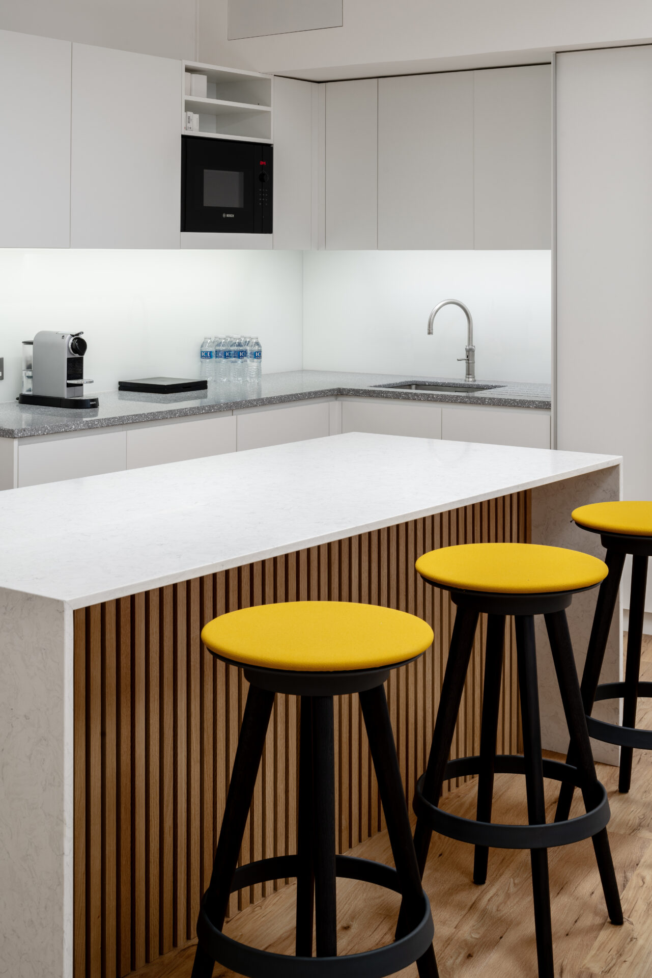 We incorporated open-plan desks, cellular offices, phone booths, a kitchen and breakout area, a welcoming reception, and a 12-person boardroom with advanced AV for conferencing.