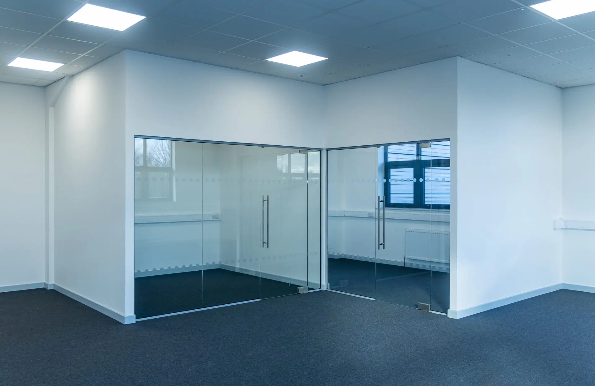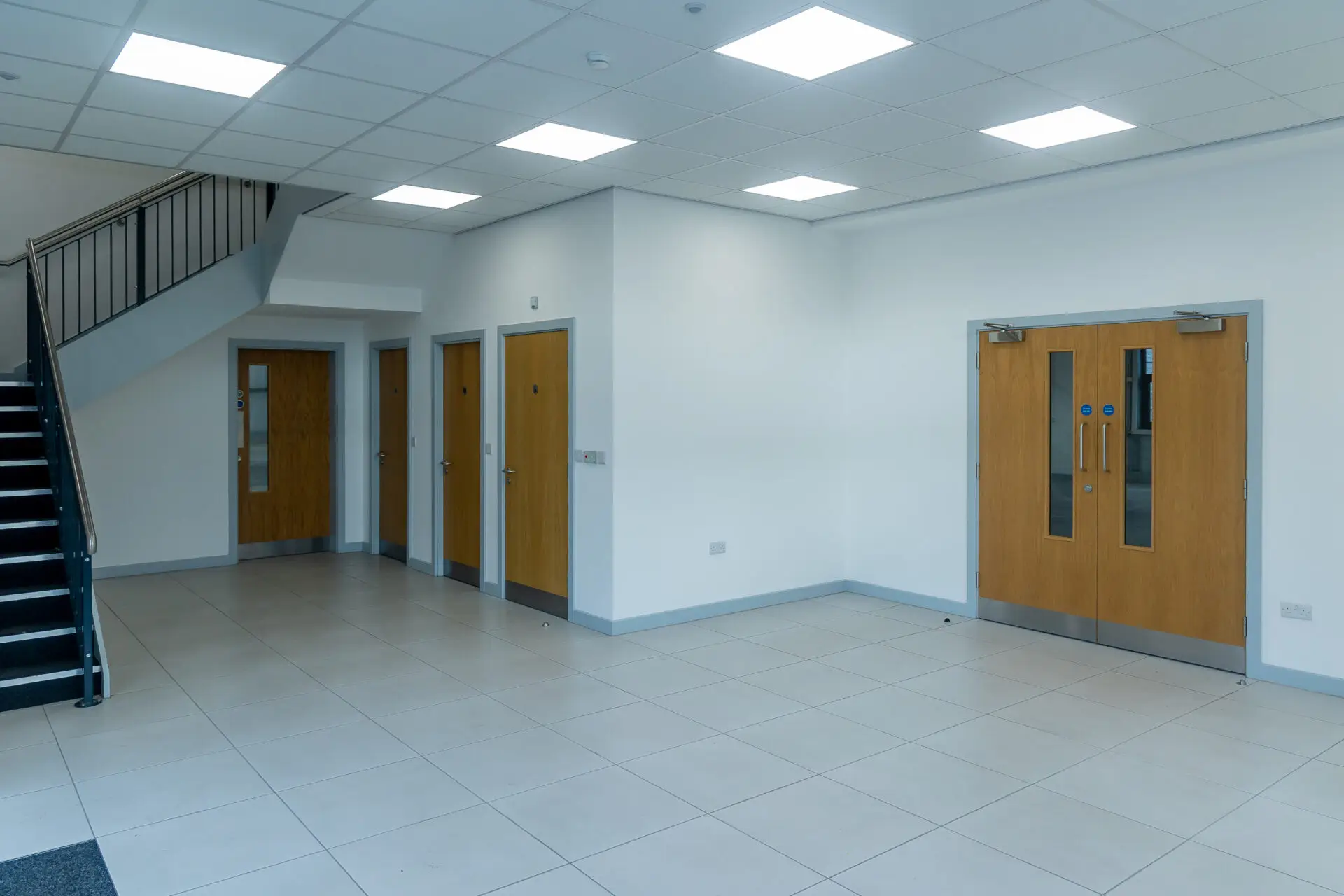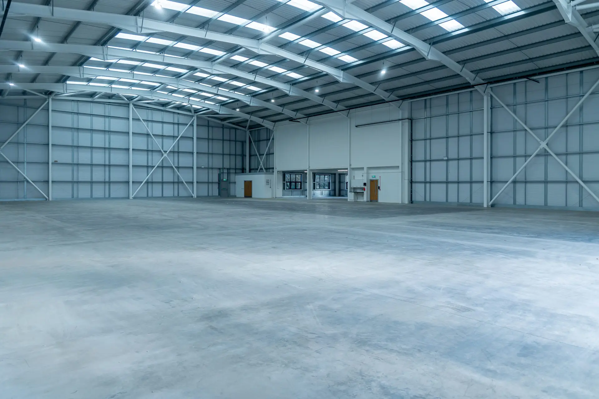 The warehouse was stripped back to its original shell, with all fixtures removed and the concrete floor professionally cleaned and resealed. On the first floor, office spaces were reinstated to a bright, neutral finish, ready for immediate occupancy.