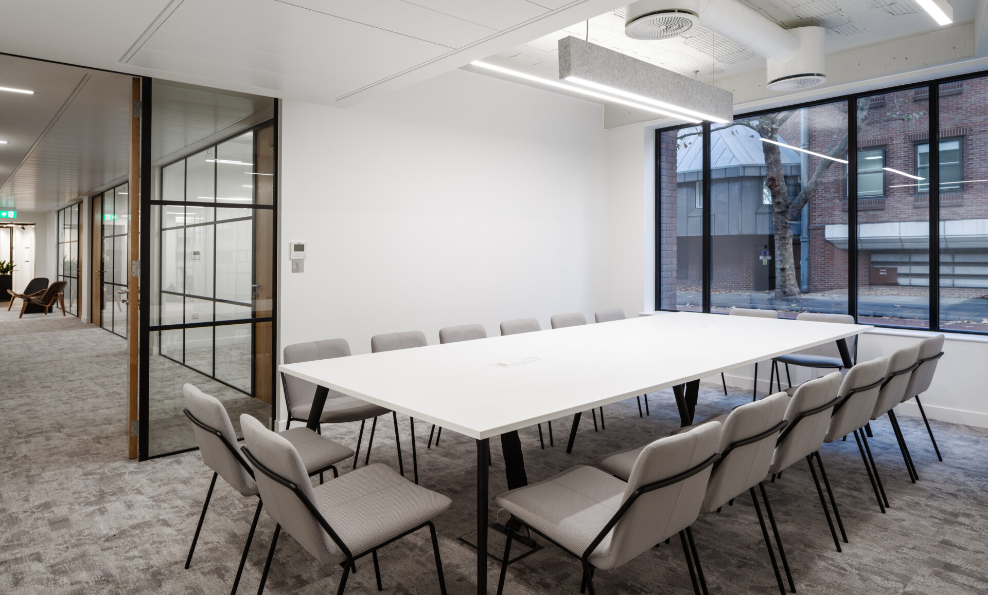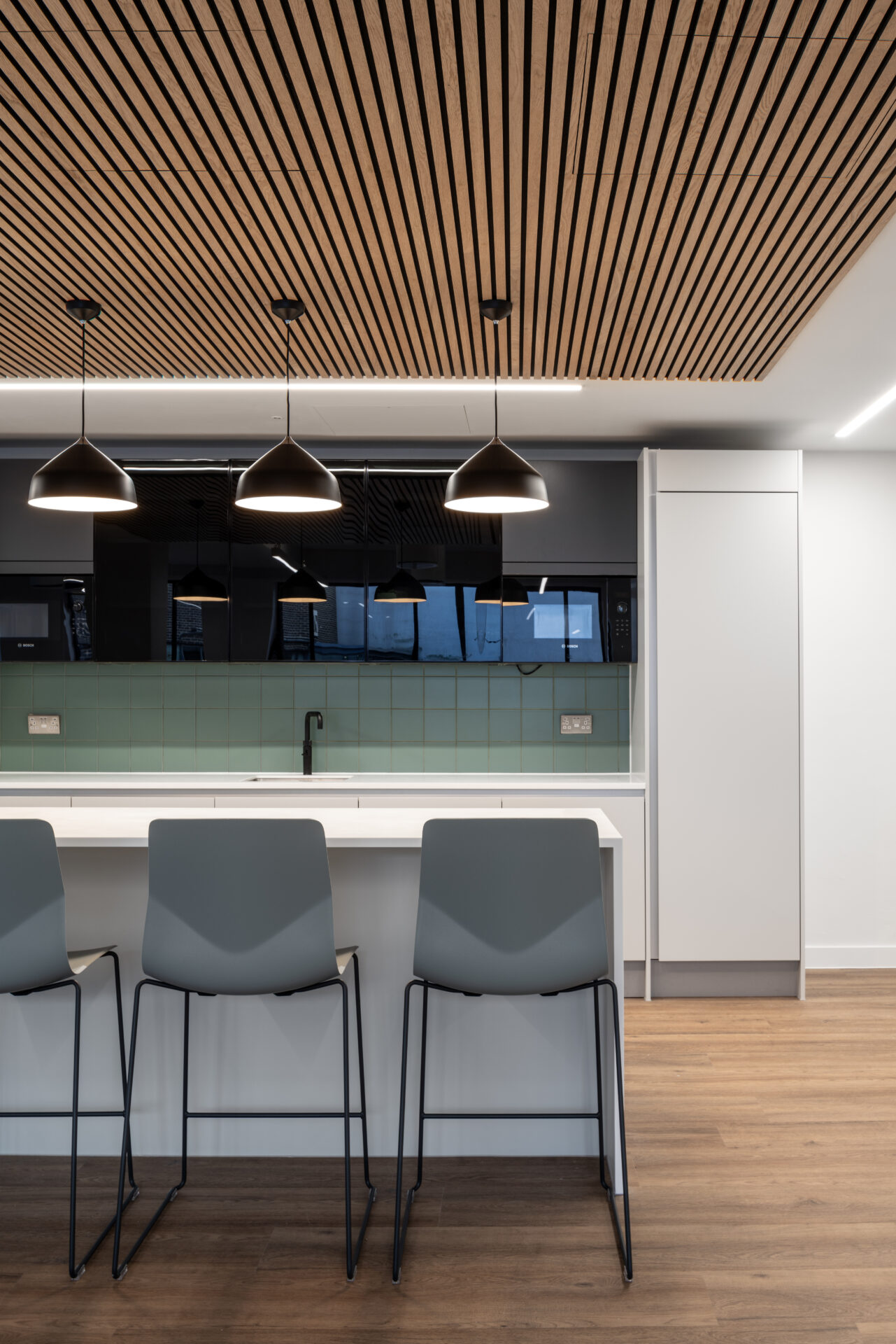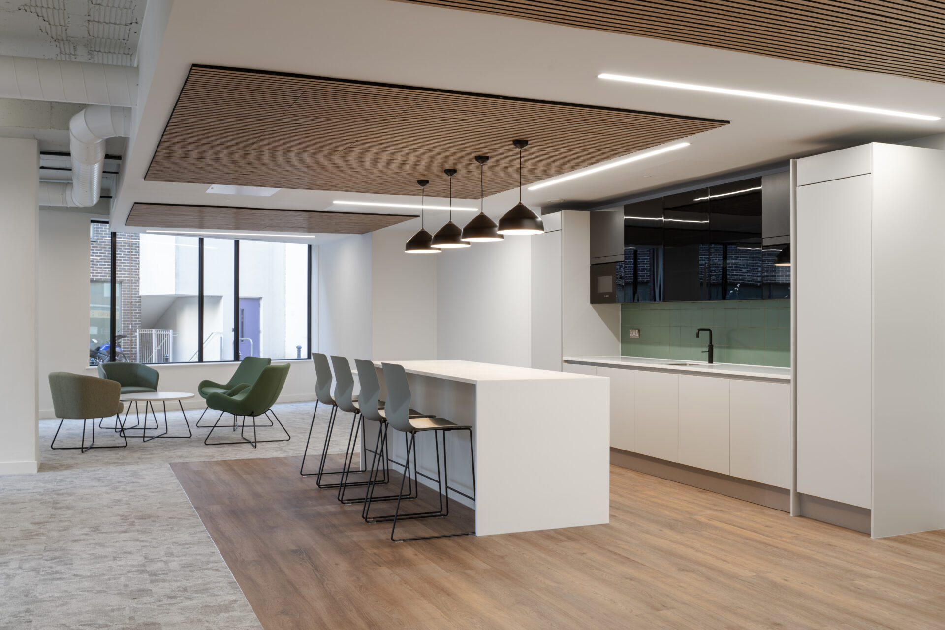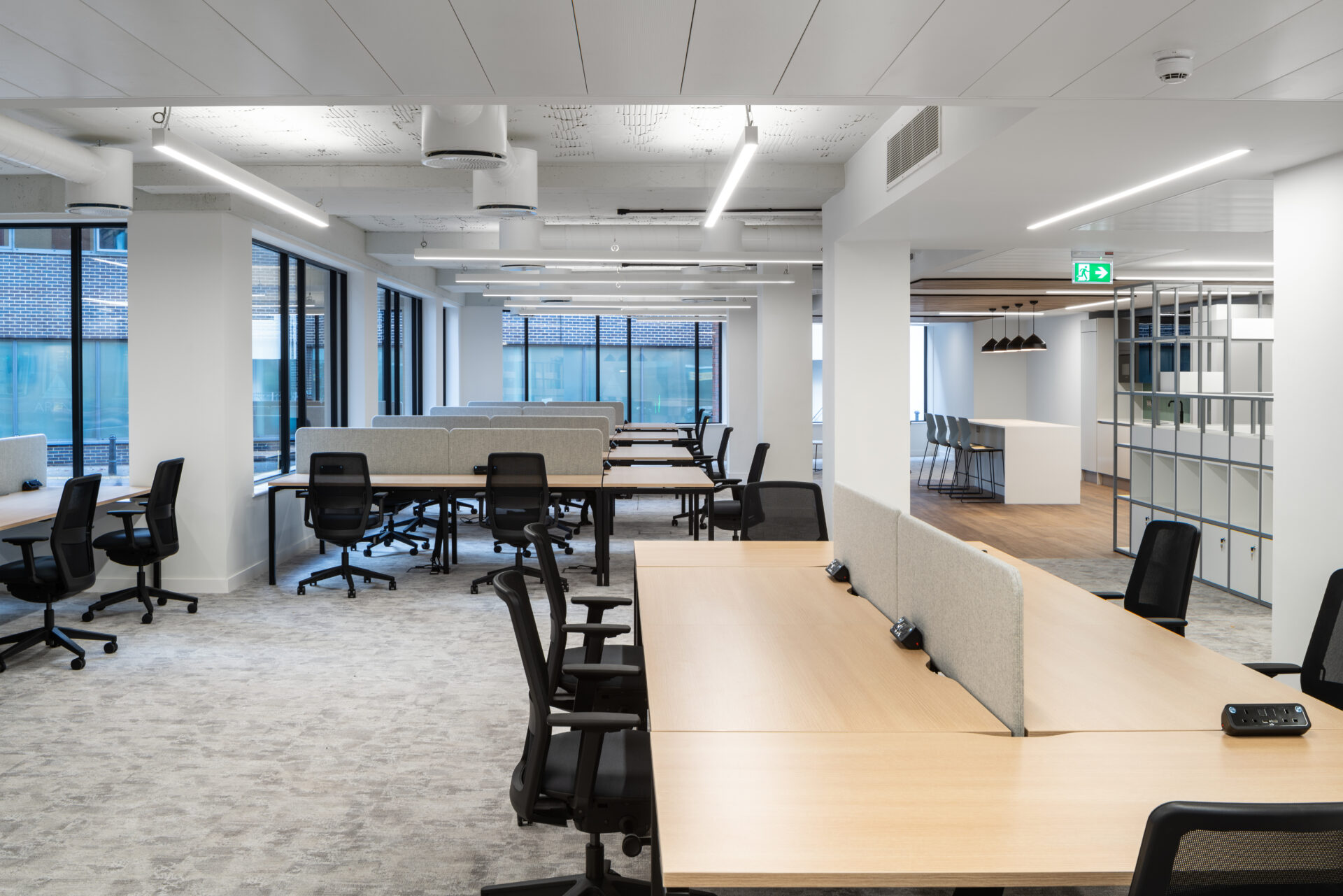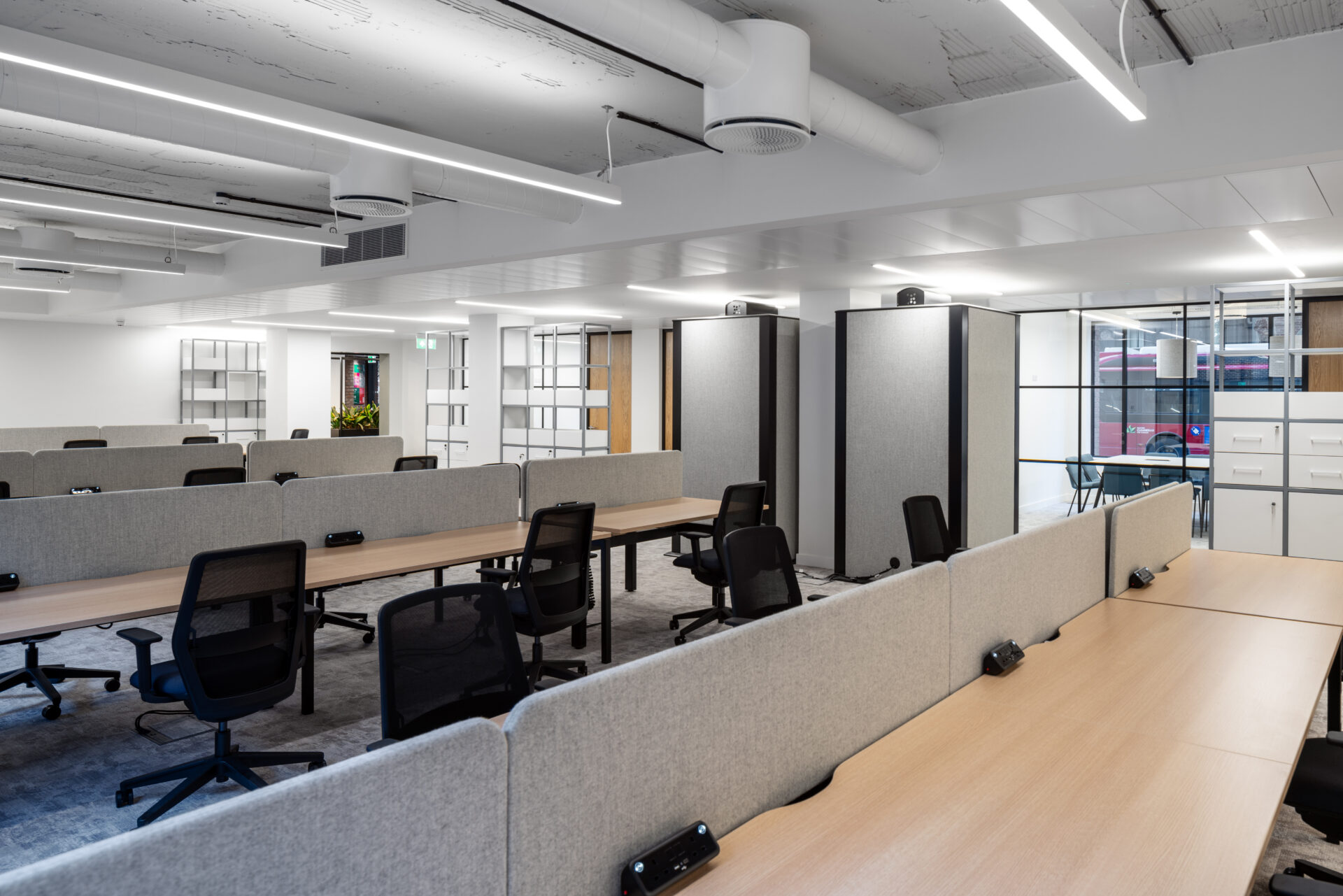 Flint Office Group created a Cat A+ office fit-out at The Drapery, blending open-plan desking, meeting areas, and zoned flooring to offer tenants a flexible, attractive workspace on the building’s ground floor.